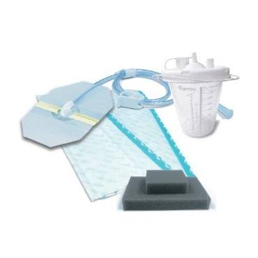 Комплекты стерильных повязок и контейнеры для экссудата – важная составляющая системы для NPWT терапии ран. Они позволяют создать качественную герметизацию раны практически на любой поверхности и делают процедуру безопасной. Специальное строение губки создает идеальный дренаж, а пропитка ионами серебра уменьшает бактериальный фон в ране.