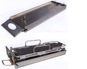 Загрузочное устройство предназначено для облегчения загрузки и хранении носилок в автомобили скорой помощи.Устройство выполнено из нержавеющей стали высокой прочности.